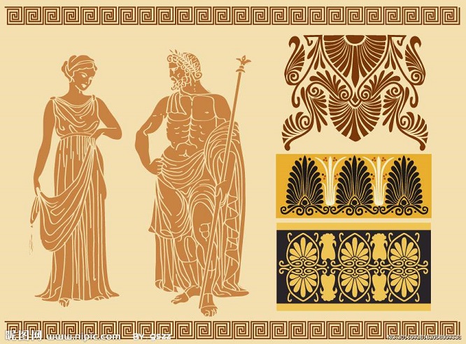 古希腊也正是因为海洋文明的包容开放,因为民主政治和多样的服装风格,形成了自己独特的多元化的文明。而在此之前我们了解到了着装的随意自然,下垂的裙褶随意的飘动。同样的,古希腊在服装上的装饰纹也很讲究。