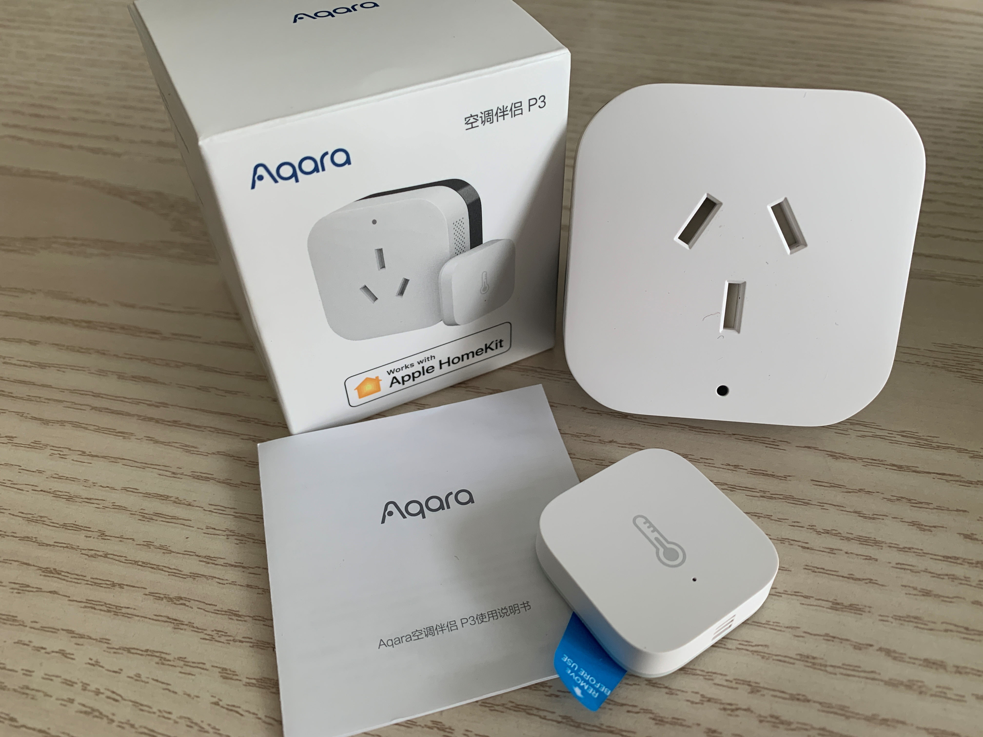 包装盒里面有空调伴侣1个、温湿度传感器1个以及说明书。所以这一次Aqara空调伴侣P3除了本身可以控制温度,还能搭配传感器来监控温湿度情况。